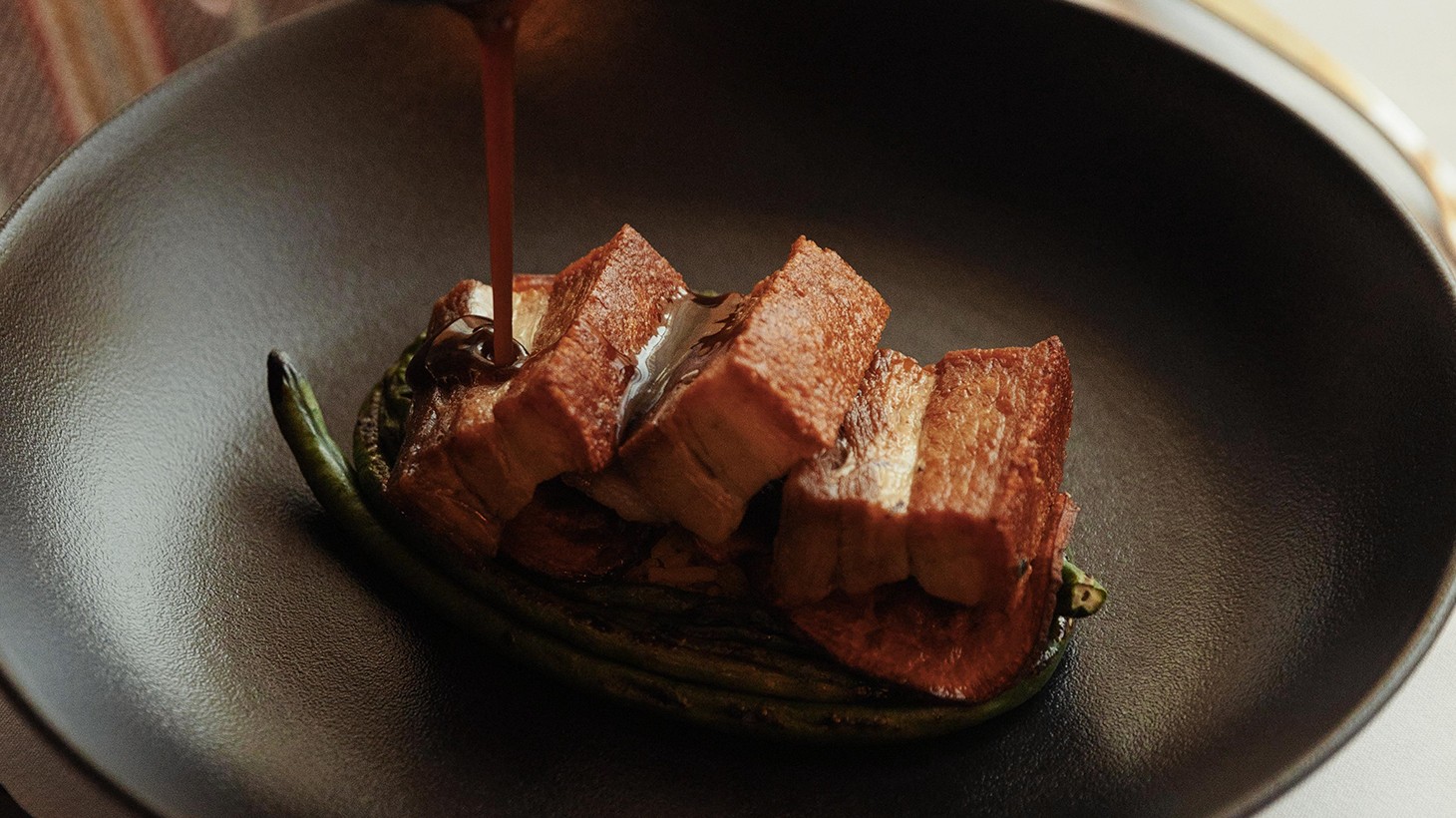 - Crisp Free Range Pork Belly: Wild rice pilaf, kamote cue, snake beans, sticky adobo sauce (gluten-free, dairy-free)
