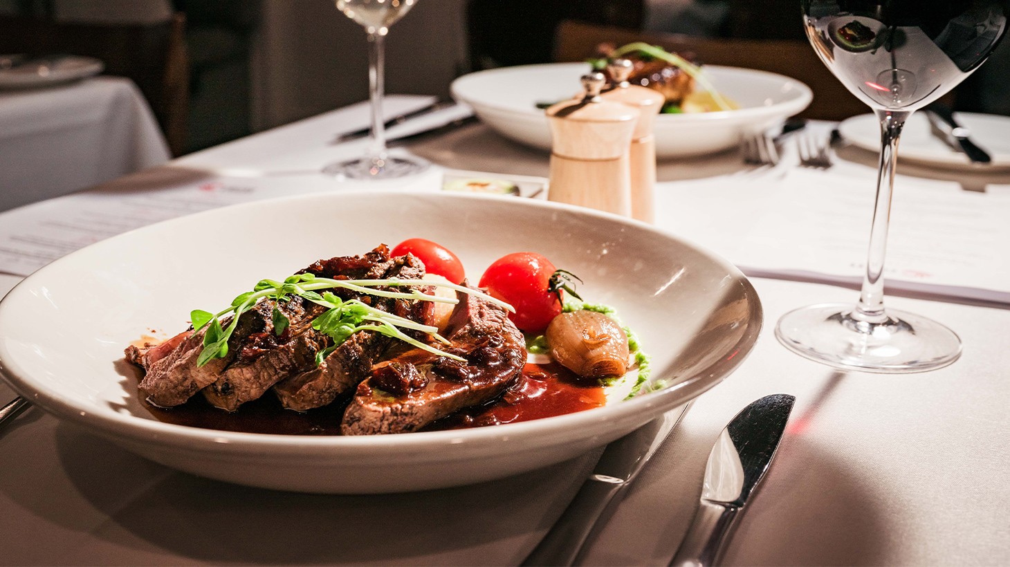 - One entree, one main and one dessert per person