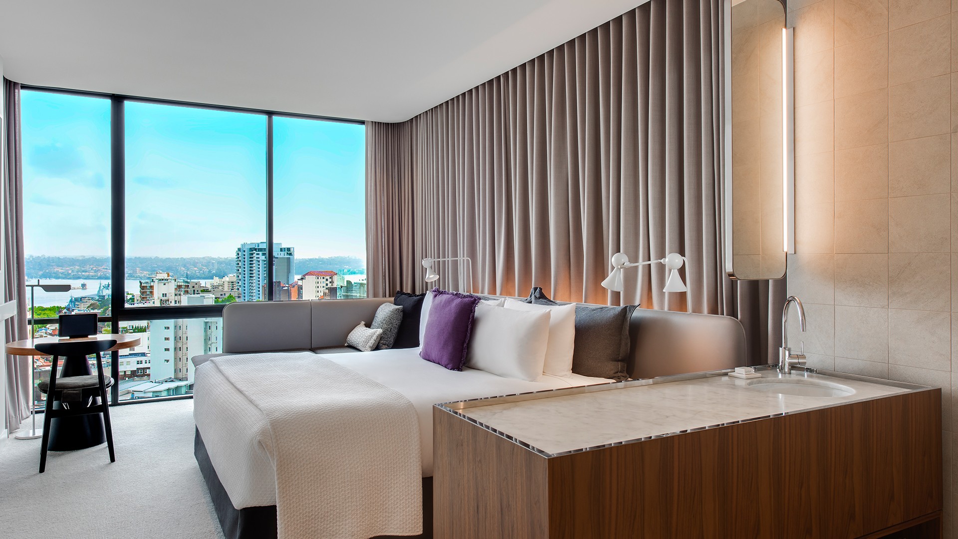 VIP Upgrade: Make your city break extra special by upgrading to a spacious suite, which boasts stunning views over the city and Sydney Harbour and a cosy seating area to admire them from.