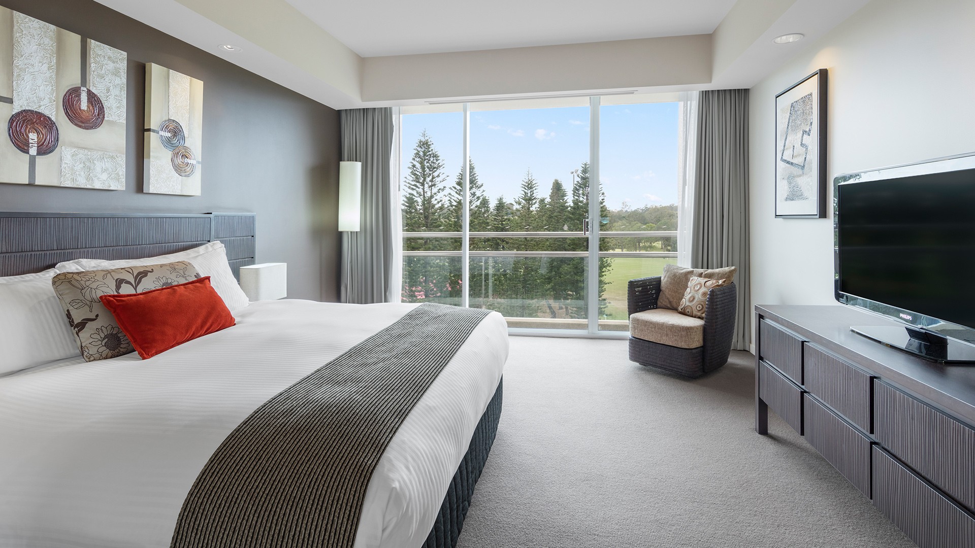Keen golfers will be in their element with three 18-hole, par-72 combination layouts, including a championship course. The Gold Coast’s scenery lends itself spectacularly to beautiful golfing, with manicured greens, scenic lakes, deep bunkers and an idyllic mountain backdrop coming together to create a rewarding yet relaxing golfing experience. The ultra-stylish One Spa, outdoor swimming pool, state-of-the-art fitness centre and tennis courts will take care of all your wellness and pampering needs, while a playground, jumping pillow and waterpark will keep the little ones entertained.