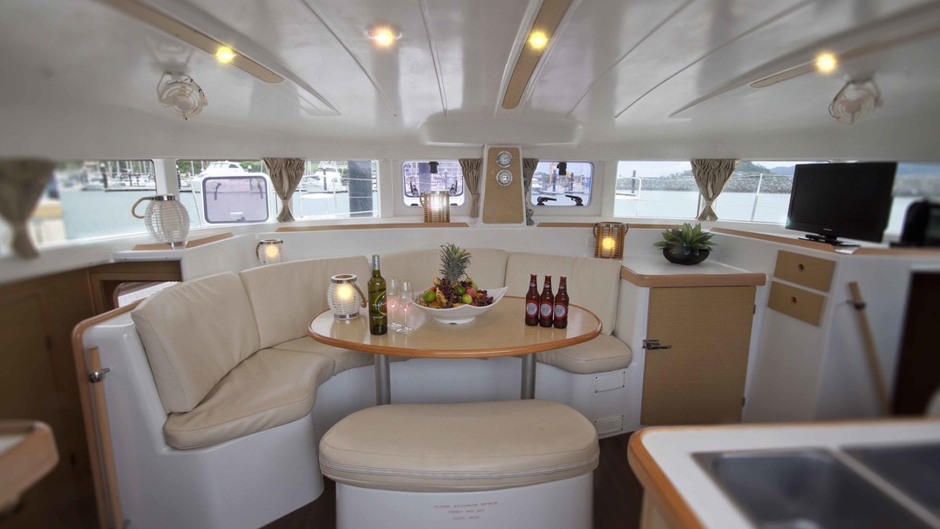 Please note: The catamaran is hired to you on a ‘bare boat’ basis, which means the charter does not include a skipper, a sail guide or any provisions or services such as airport or marina transfers, fuel, fees for mooring/berthing, Environment Management Charges or food onboard.