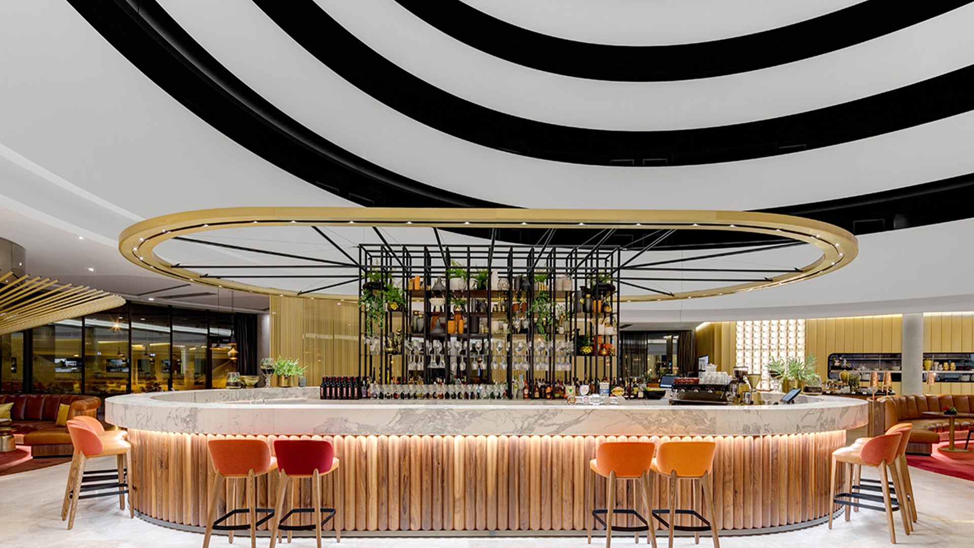 Elevate your next escape to Australia’s capital with a stay at this elegant, design-forward hotel, just a 10-minute drive from the city centre. The hotel’s spectacular lobby, inspired by New York’s iconic Guggenheim Museum, features a seven-story atrium, a contemporary fireplace and striking circular geometry.
